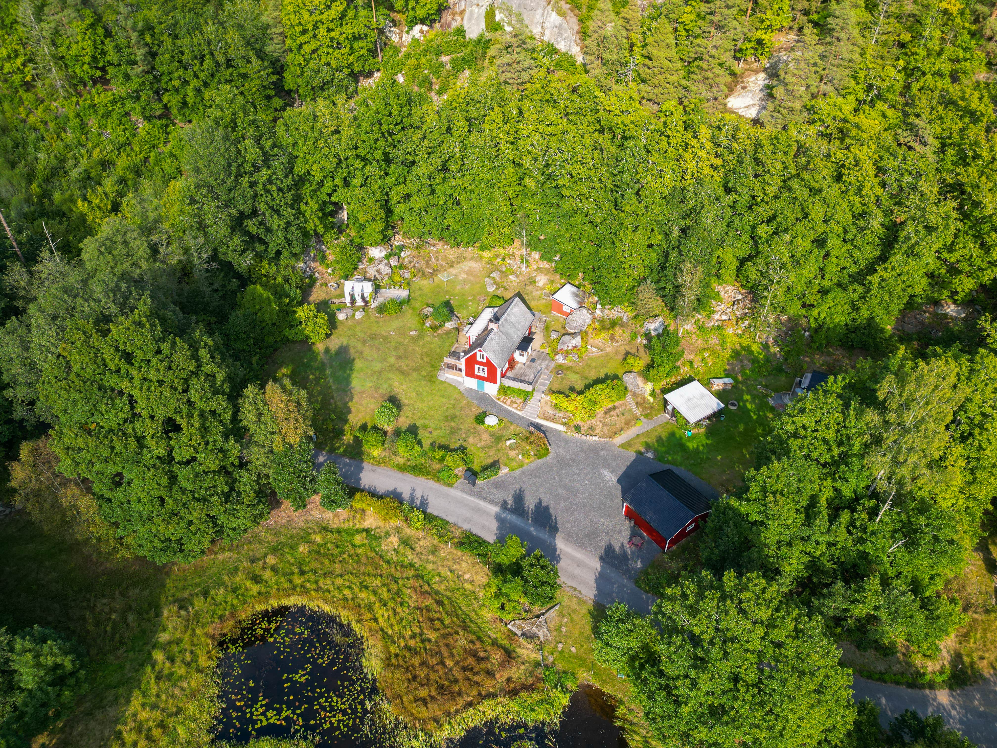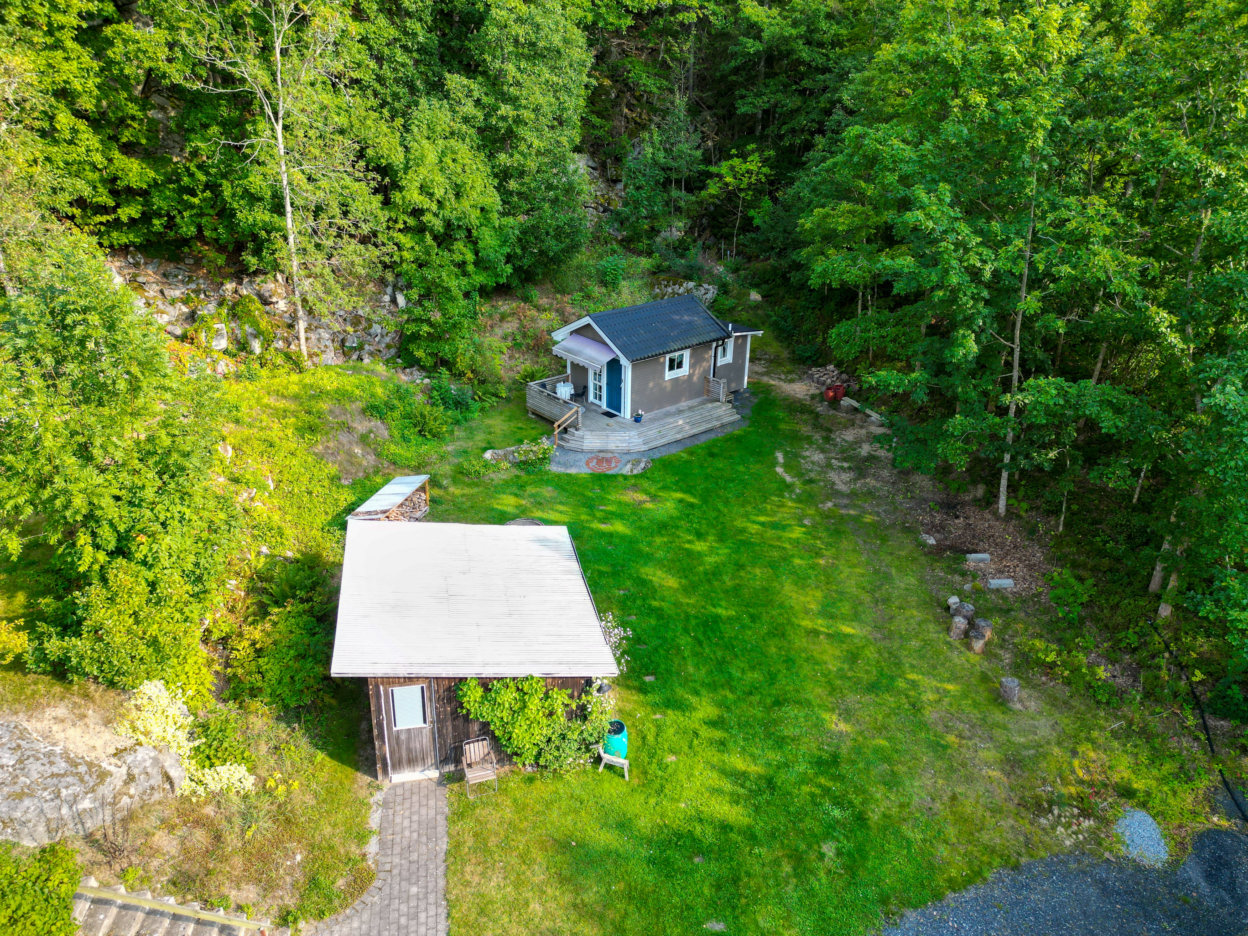 The Main House and Guest House are located on the same property but with their own space. You can see their exact placement in the aerial video linked above.